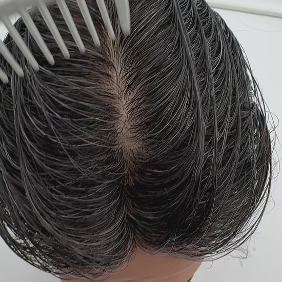 - Gray Hair Ratio: 20% gray blended with natural hair color